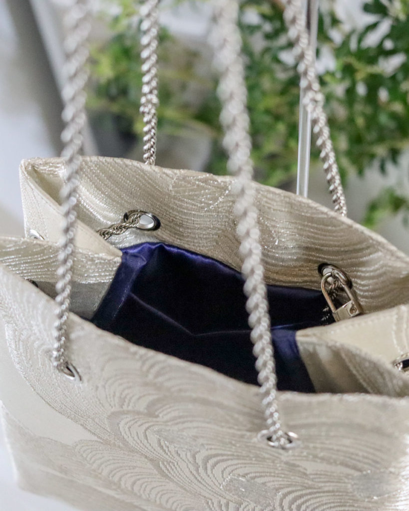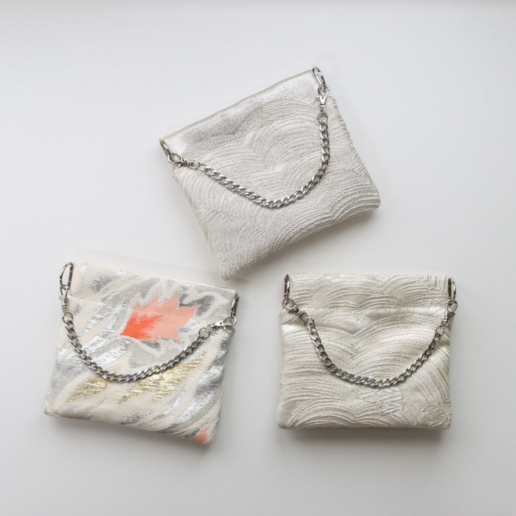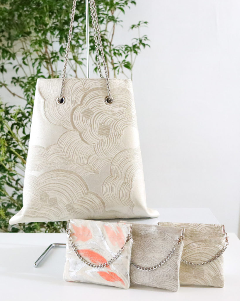 お持ち込みの袋帯と名古屋帯からバッグとポーチへリメイクさせていただきました